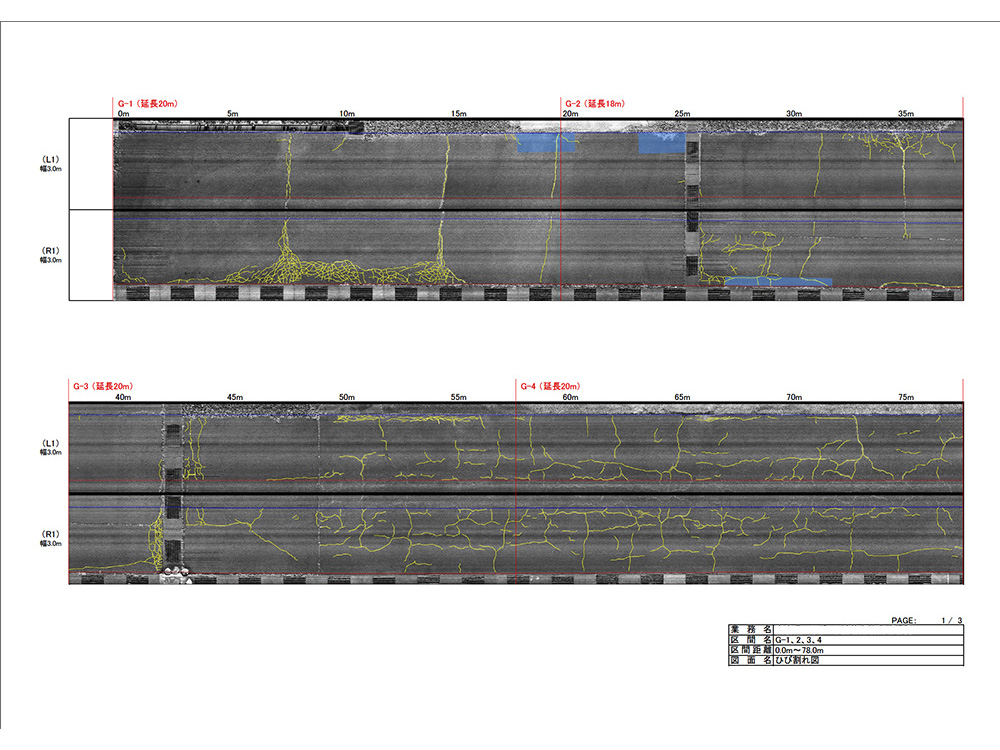 既設舗装材の劣化状況の評価を行い、補修設計の基礎資料を作成します。