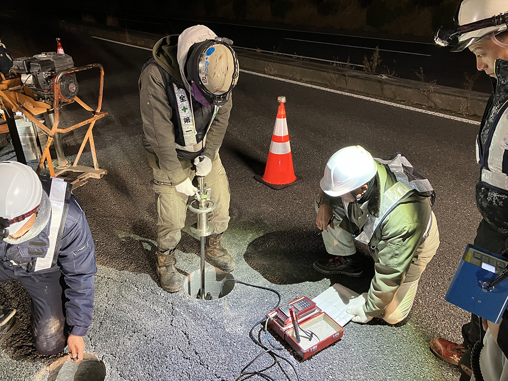 ロードキャプチャーやFWDによる非破壊検査の他、開削調査などを行い改修工事のための設計を行います。